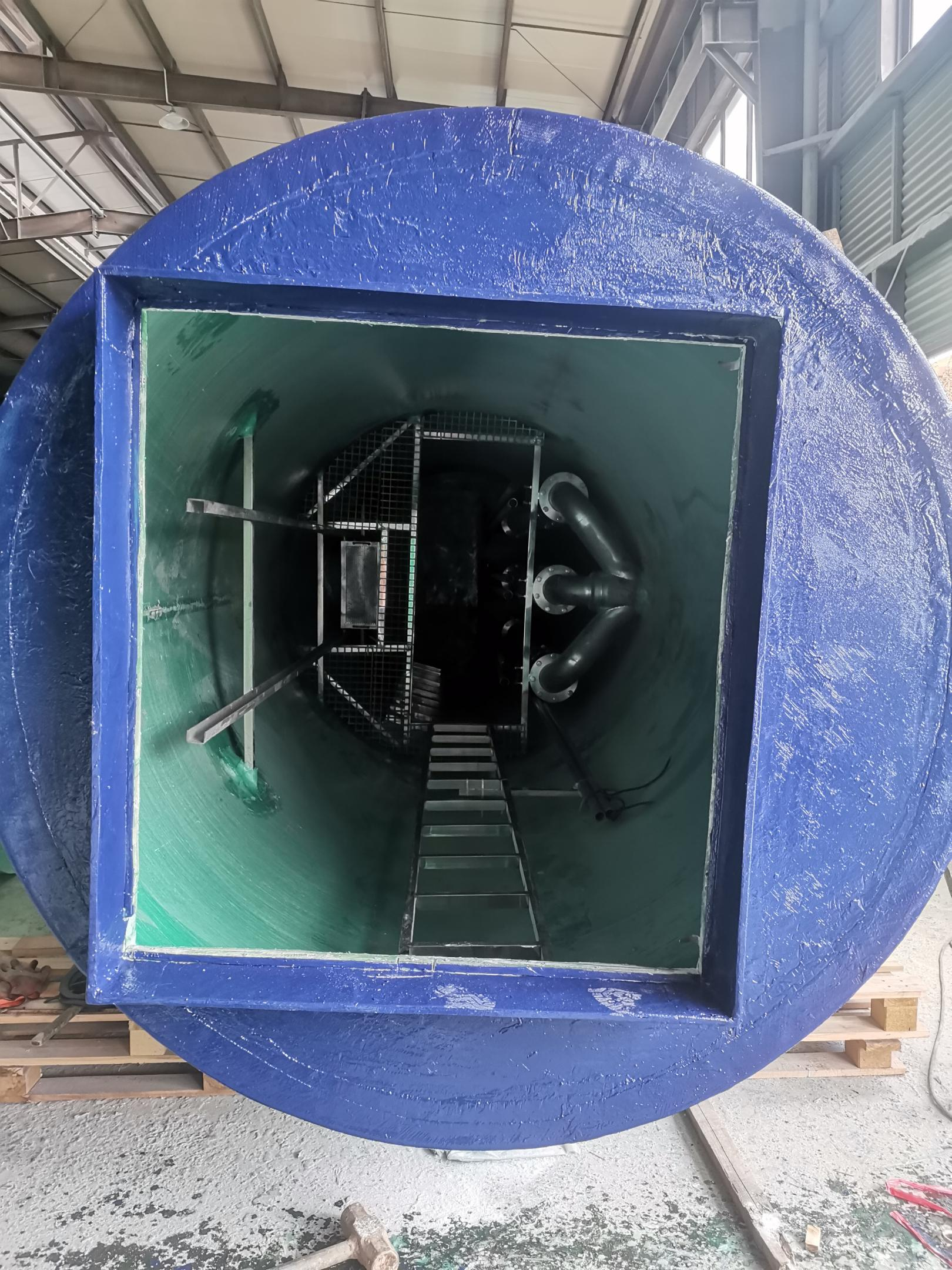 一体化预制泵站介绍预制泵站针对市政工程、建筑等污水提升需求研发的产品。具有快速施工、适应性强、寿命长、环境友好等优点。可用于生活污水、雨水、工业废水排放,也可用于水源取水,是新一代的绿色科技产品。一体化预制泵站工作原理泵站是一种集潜水泵、泵站设备、除污格栅设备、控制系统及远程控制系统集成的一体化产品。筒体采用的加厚型中等密度玻璃钢材质铸造而成。泵站主体由GRP井筒、水泵、管道、阀门、传感器、控制系统和通风系统等部件组成。